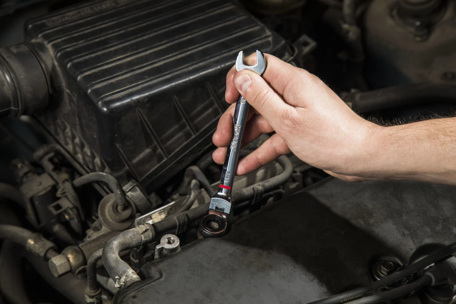 - 90-Tooth ratcheting box end provides 4Β° of arc swing