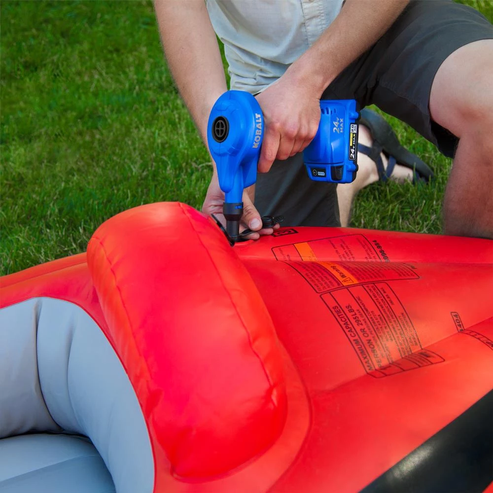 KOBALT 24V cordless high volume inflator is perfect for fast inflation of air mattresses, pool toys, sports balls, etc.