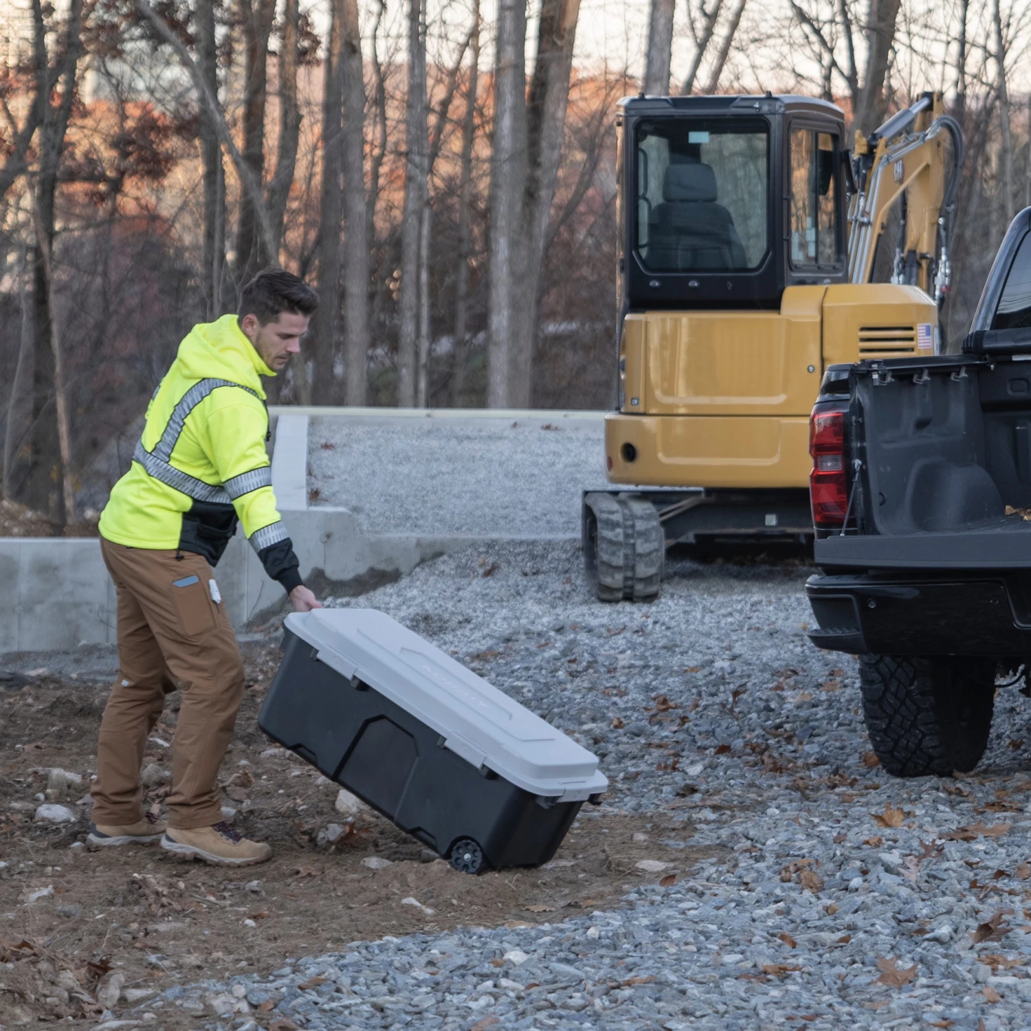- Strap indicators on the lid can make tying down the storage bin more secure