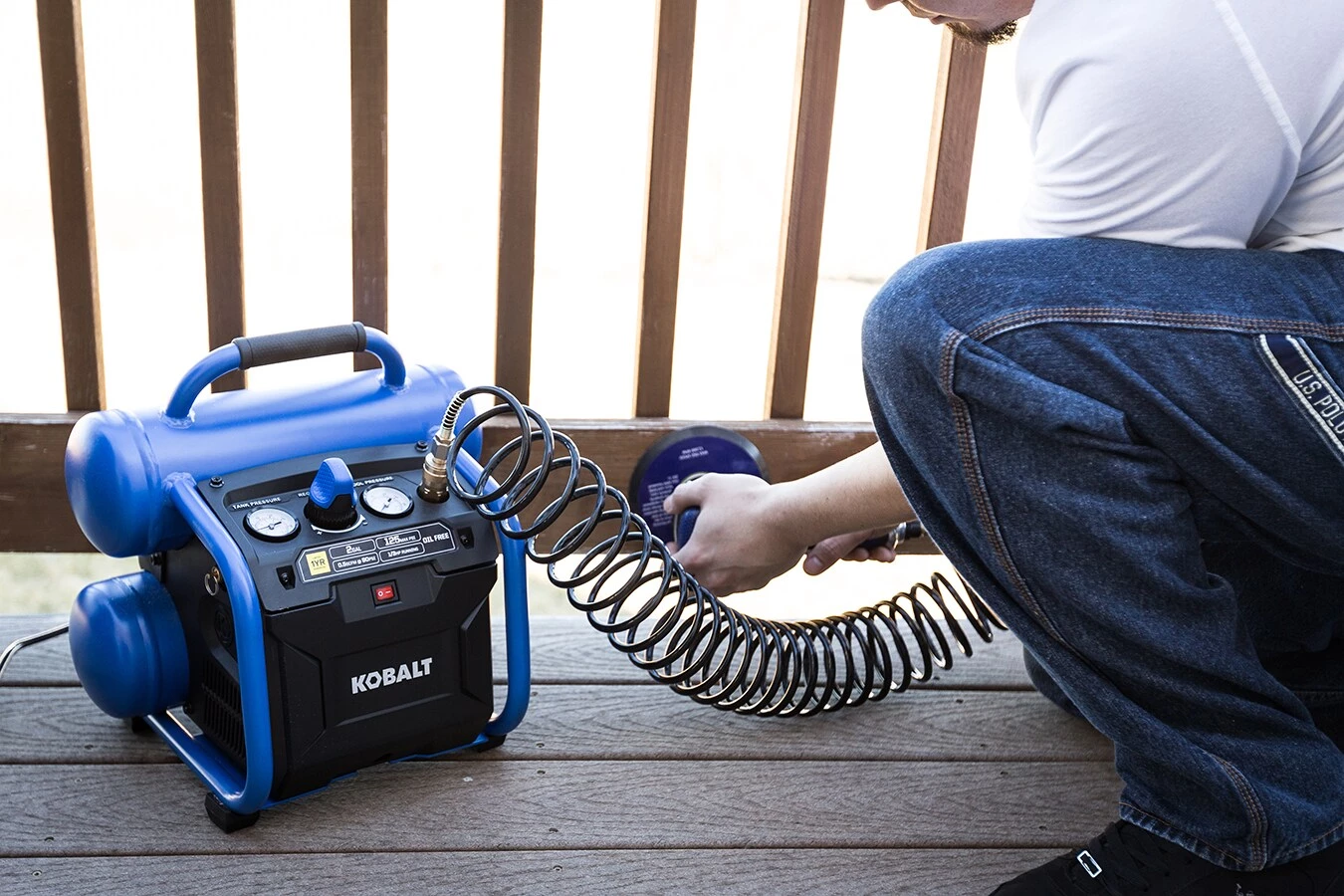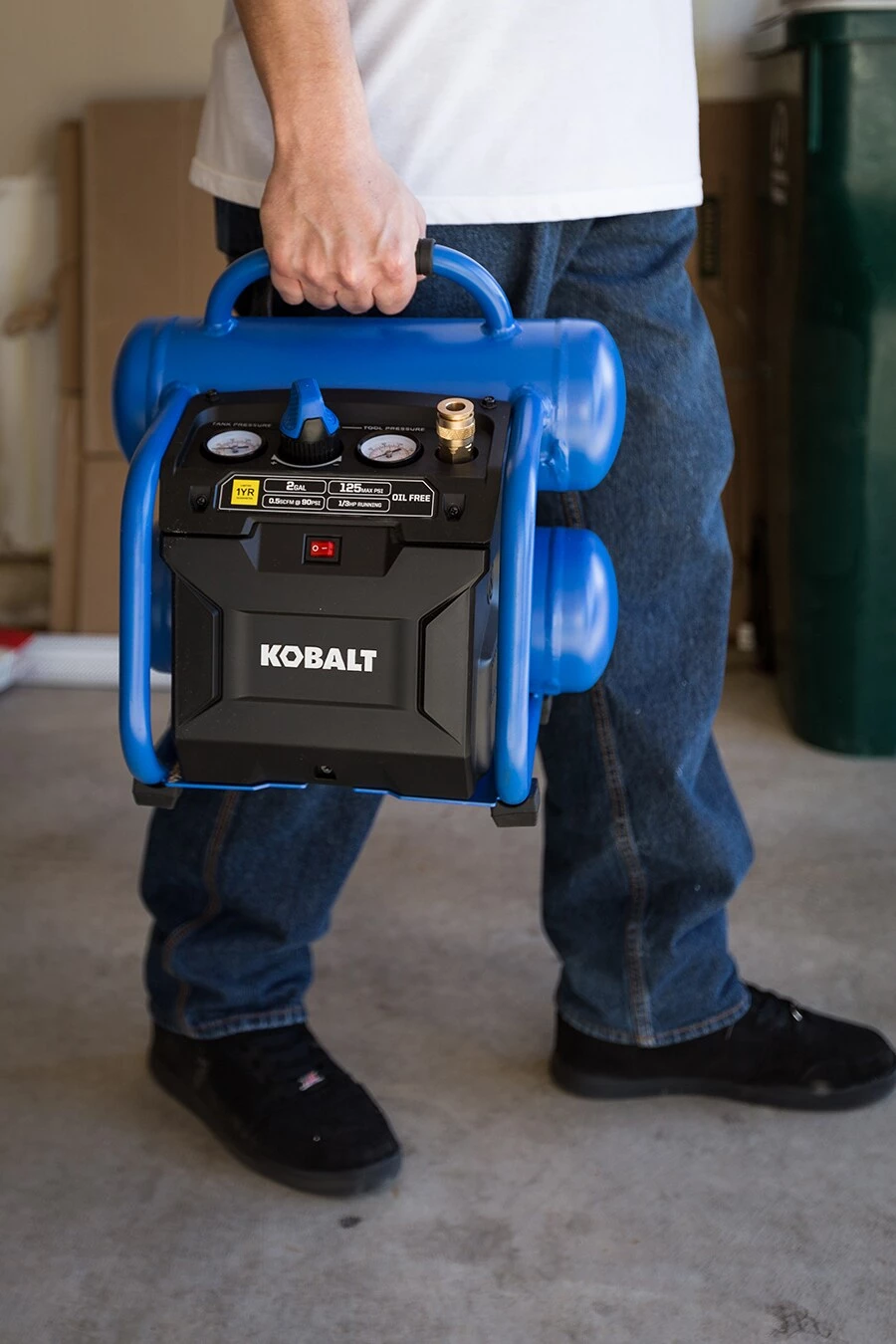 This 2 gallon compressor is perfect to be used around the house to blow up floats or sports balls. To blow air in the shop to remove dust and debris. It can also be used for pin nailing and finish work around the job site.