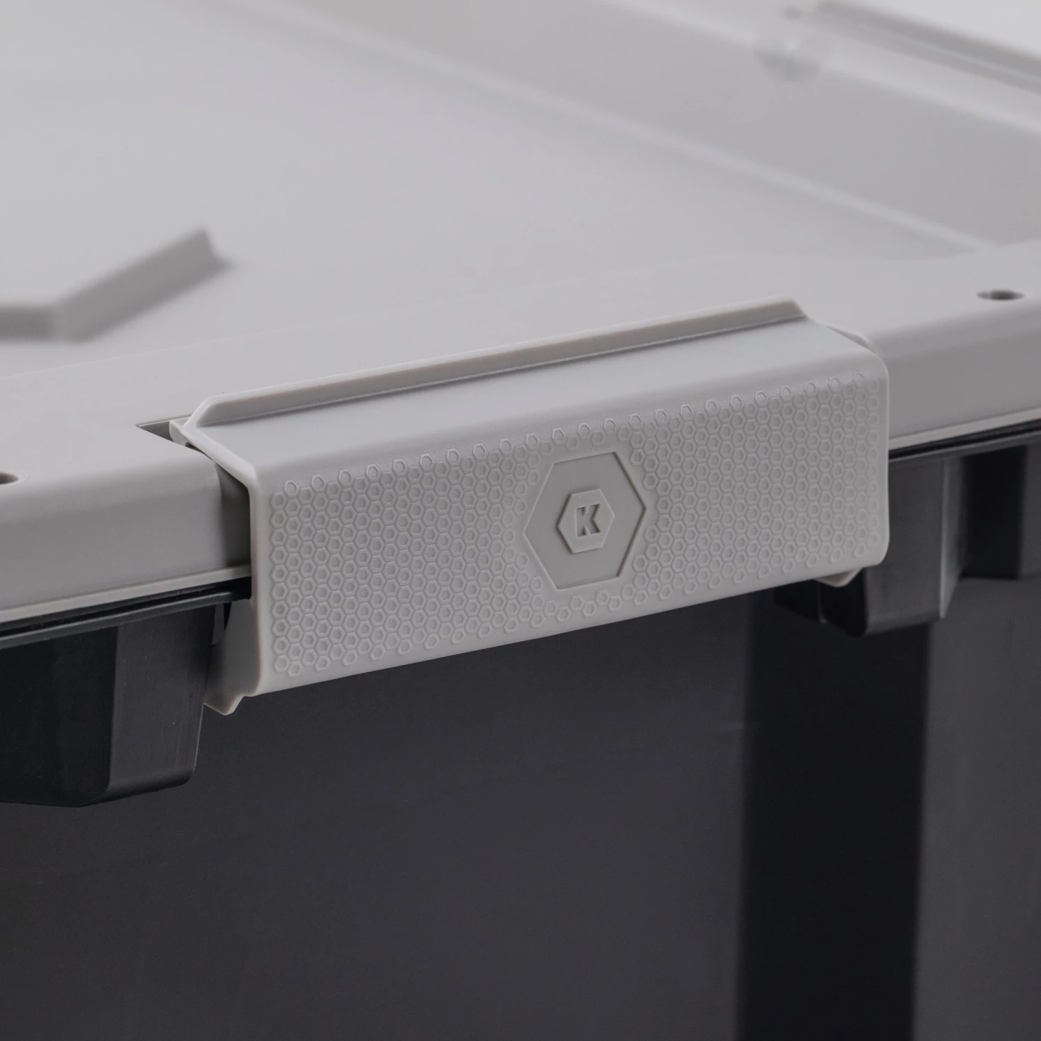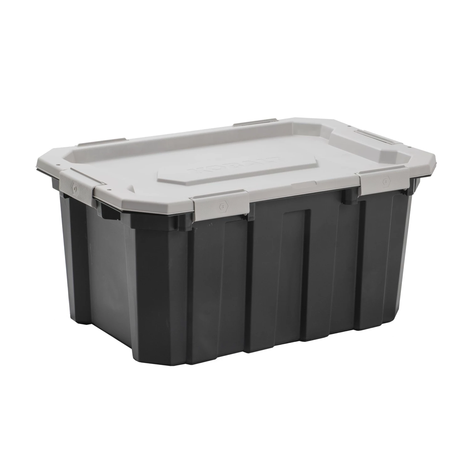 Kobalt 24 Gallon heavy duty weatherproof tote is perfect for storing your valuables to keep them safe from water, moisture, dust and any debris. This tote offers heavy duty latches and a foam seal around the rim of the lid to keep everything out.