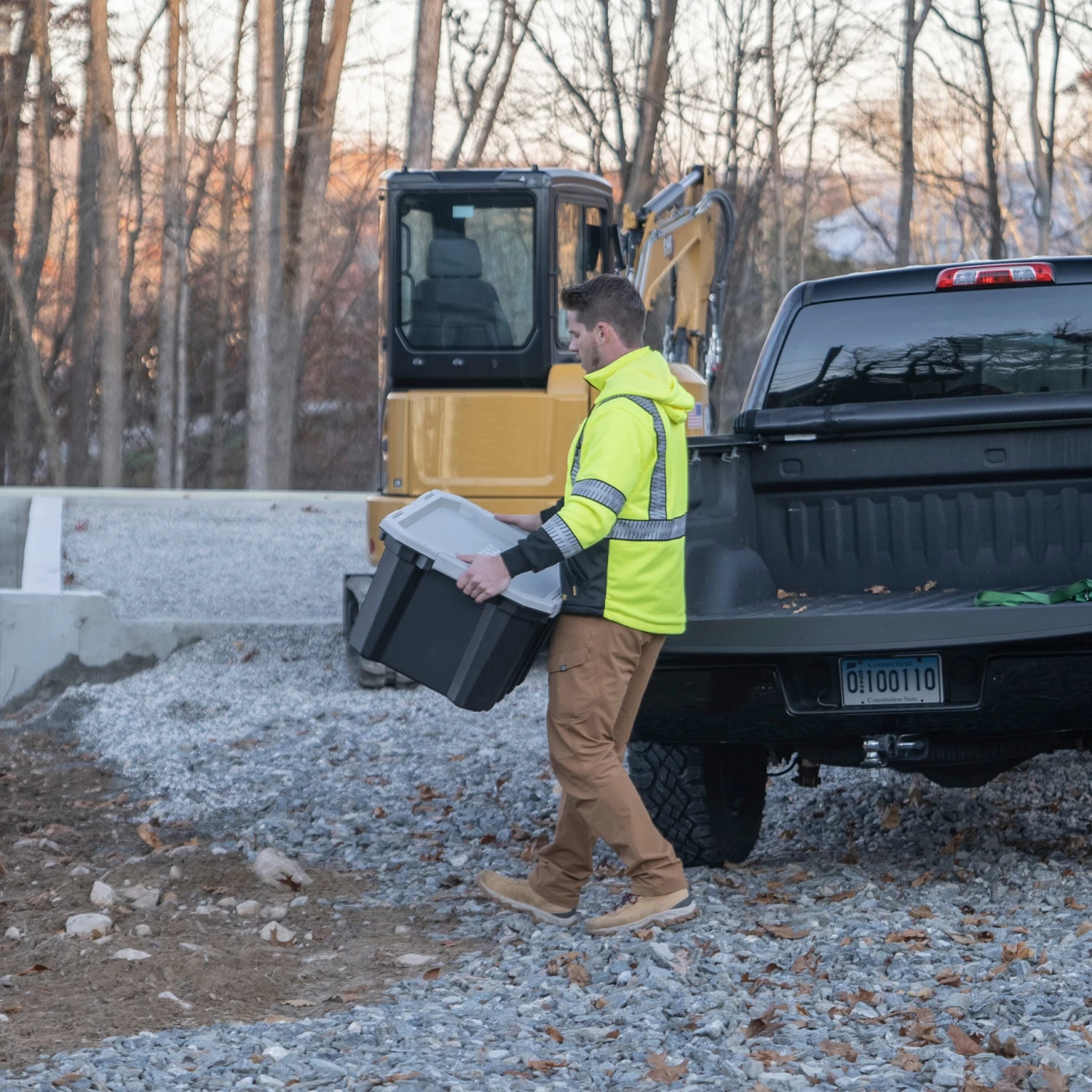 - Strap indicators on the lid can make tying down the storage bin more secure