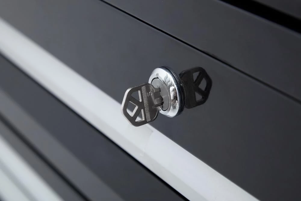 Specially designed to give you all the performance you need. With 9 drawers of varying widths and depths, finding the perfect place to organize your tools should be a breeze. Heavy duty soft-close drawer slides and custom-fitted drawer liners make accessing your tools easy and carefree. This box is built tough with double walled construction in both frame and lid. This 3000 series product features gas lift hinges, recessed, swivel side handles and a magnetic power supply for charging all your electronics and power tools. Integrated vertical peg board drawer for easy visual access to everyday tools.