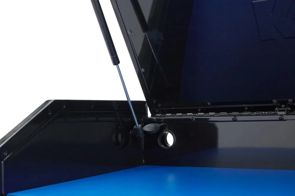 - Access grommet under lid in top chest storage area allows you to plug in and secure your favorite electronics or charge your power tools