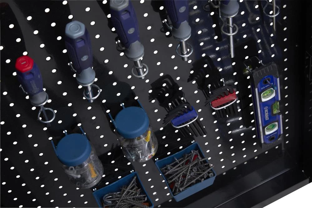 - Innovative vertical pegboard drawer allows for quick access to tools and accessories