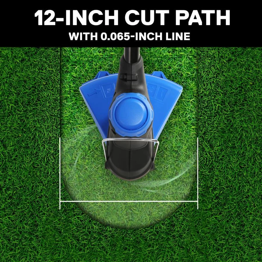 - Dual line auto feed head with 0.065-inch line cuts a 12-inch swath