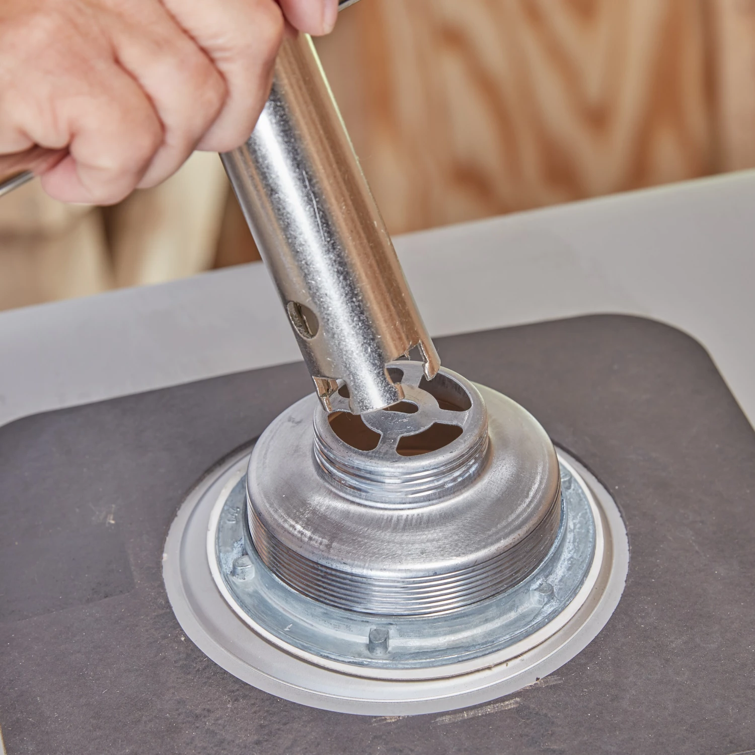 - Holds basket strainers in place during installation