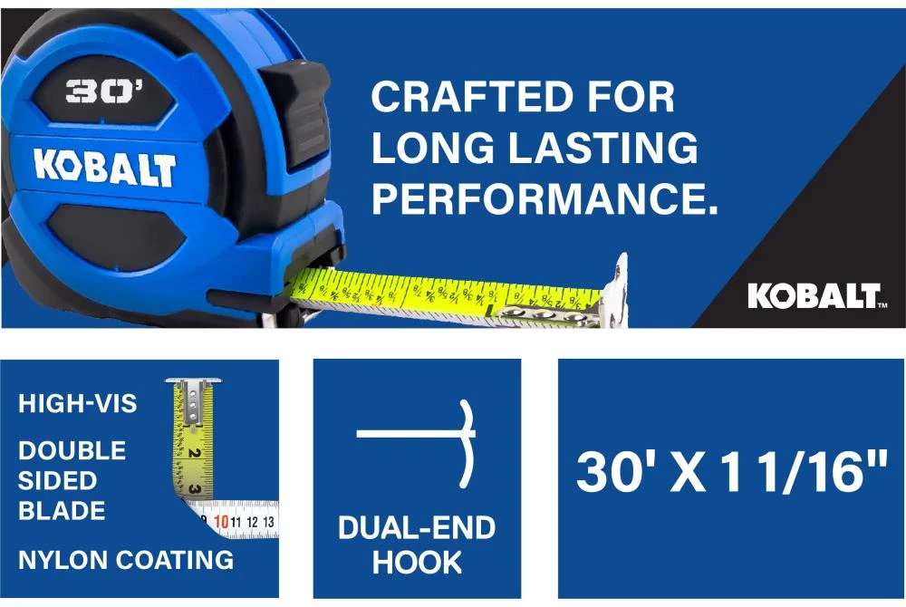 This tape measure has a 1-1/16″ wide blade to allow for added standout and the dual end hook provides a larger surface to easily grasp on to any material to start your measurement. The fractional graduations and high visibility blade color allow for better readability in any situation. The wire belt clip also protects your work apparel by reducing the sharp edges of conventional belt clips. This tape measure is perfect for any DIY project and is built strong enough for the toughest of jobsites.