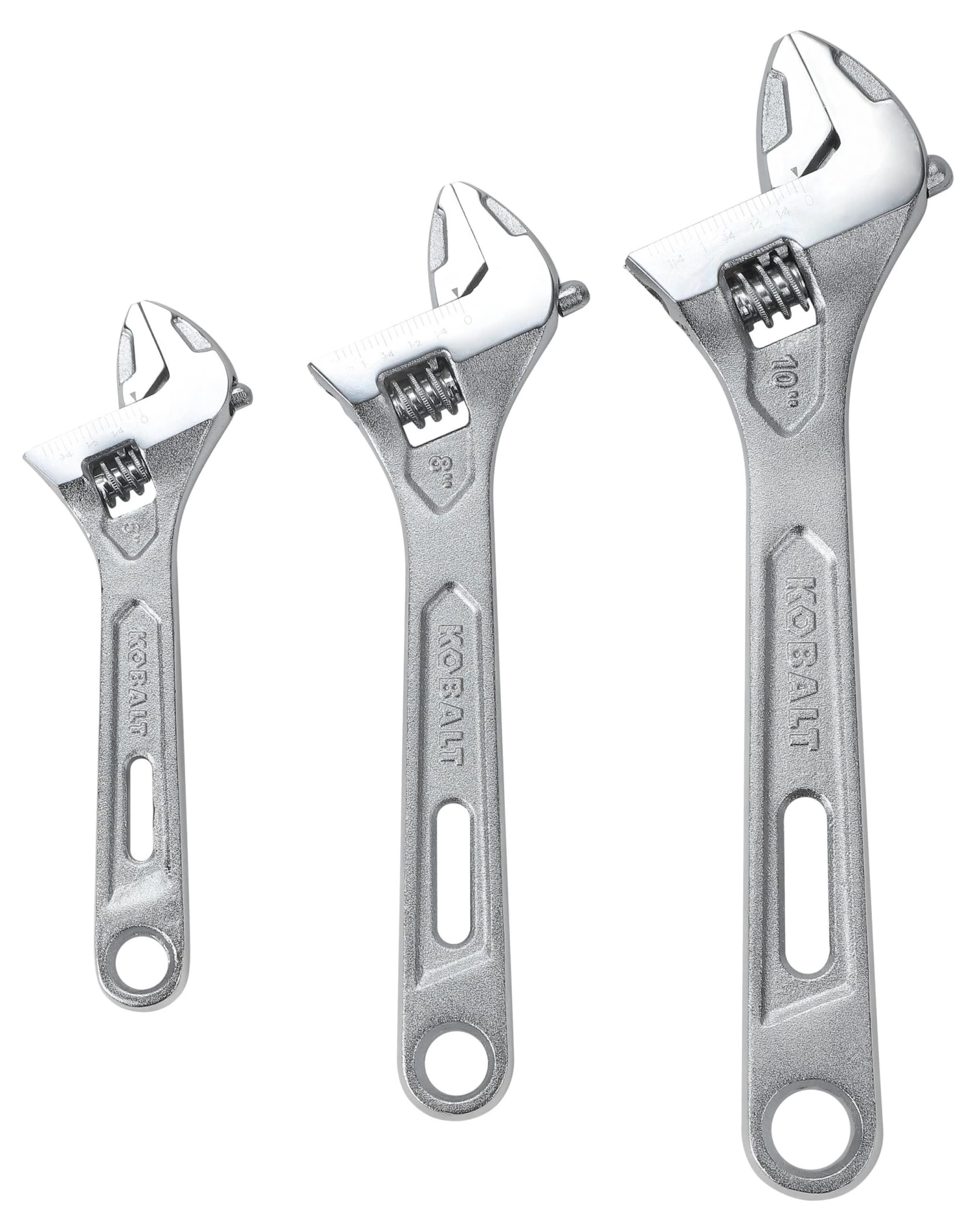 - Kobalt 3-piece tool set includes 6-in, 8-in and 10-in adjustable wrenches with extra-wide jaws for versatility