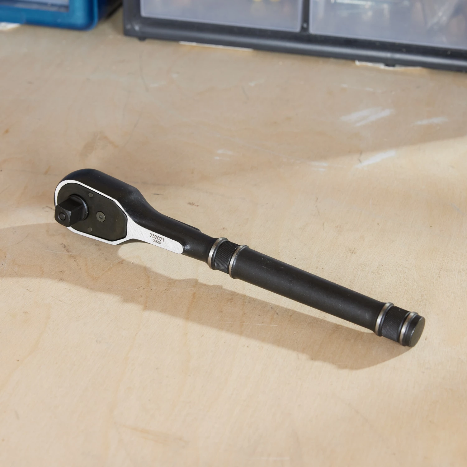 - Quick-release button on ratchet allows for rapid socket and/or accessory change